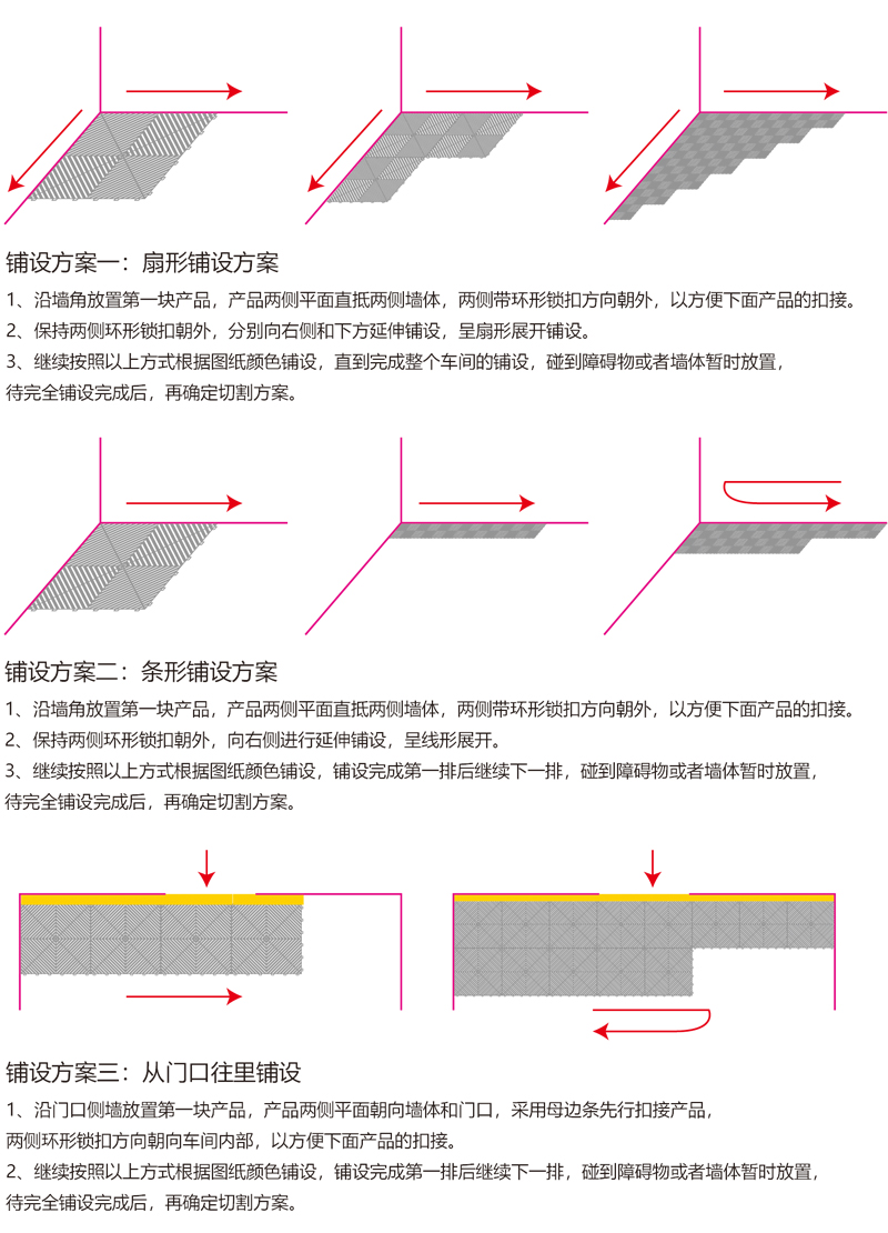 5、鋪設(shè)本產(chǎn)品100平米以上面積需要設(shè)置伸縮縫,充分考慮熱脹冷縮的影響;